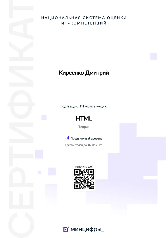 Наше digital-агентство обладает широким спектром компетенций, подтверждённых авторитетными сертификатами и партнерскими статусами ведущих платформ и инструментов. В штате по адресу: г. Сызрань, ул. Смолина, 5, работают сертифицированные специалисты по веб-разработке (HTML5, CSS3, JavaScript), PHP, Python и современным фреймворкам (React, Vue, Laravel), а также дизайнеры, получившие аккредитации в сфере UX/UI и графического дизайна.